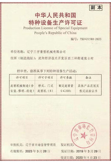 • 三宇人將以“創(chuàng)三宇國際品牌,興中華民族工業(yè)”為己任,努力奮斗,不懈奮斗,加快發(fā)展,繼續(xù)譜寫中國起重機械制造史上的新篇章。